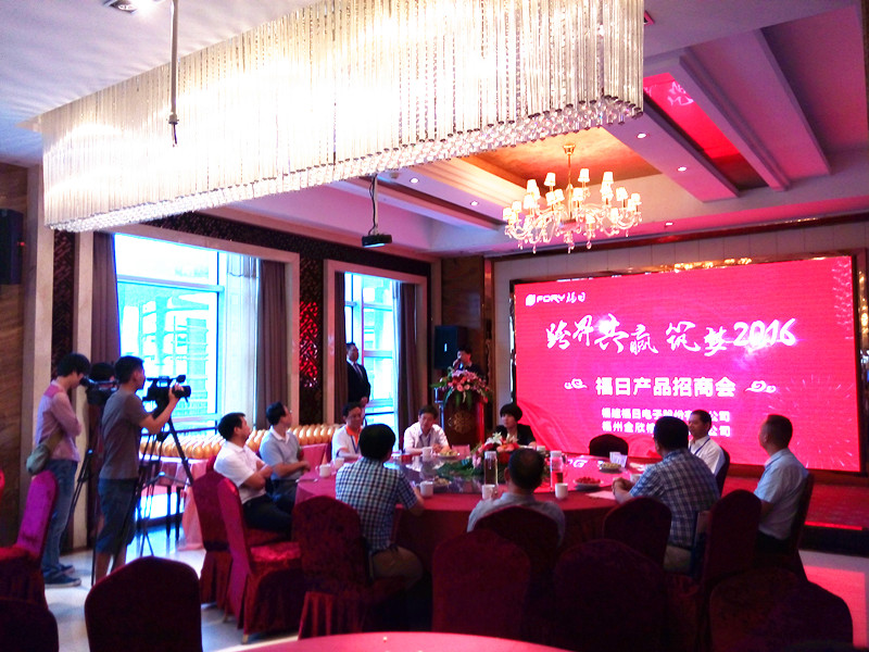 2016912日,福日電子部分產品經銷商會議在福州長樂市舉辦。本次活動由福日電子主辦,福日電子所屬電子商務部、福建福日照明有限公司、福建友好環境科技發展有限公司攜手福州金欣榕公司共同承辦,主要展示福日彩電全系列產品;福日智慧家電及物聯網產品;福日太陽能LED路燈、庭院燈、照明燈;太陽能光伏發電系統等。福日電子總裁溫春旺、黨委書記李震、副總裁陳富貴出席本次會議。本次活動旨在宣傳福日電子品牌,拓展福日電子產品銷售市場,吸引了200多家經銷商參會,數十家媒體前來報道。本次會議還舉行了福日電子經銷商簽約授牌儀式、產品發布、現場優惠訂購等活動。