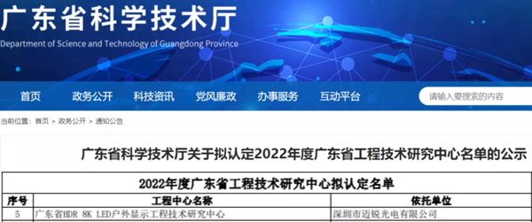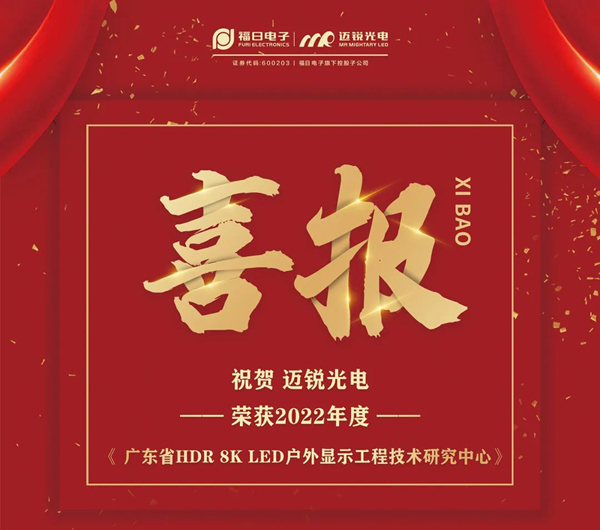 近日,廣東省科學技術廳發布了《關于擬認定2022年度廣東省工程技術研究中心名單的公示》,經專家評審和網上公示,福日電子成員企業邁銳光電獲2022年度廣東省HDR 8K LED戶外顯示工程技術研究中心資格認定。