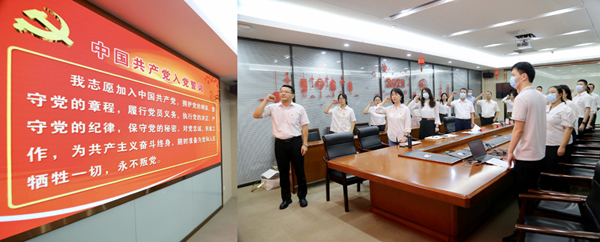 “我志愿加入中國共產(chǎn)黨,擁護(hù)黨的綱領(lǐng),遵守黨的章程……”隨后,黨員們心懷赤誠,舉起右拳,重溫入黨誓詞,追憶入黨初心,鏗鏘有力的聲音響徹會(huì)場(chǎng),表達(dá)了對(duì)黨的無限忠誠與熱愛。